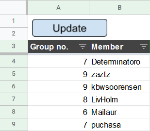 This button has been assigned the dividePGMembersBetweenGroups script from the SprintRetrospective.gs file.